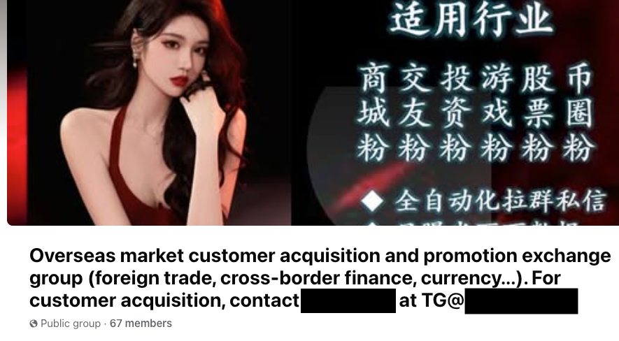 These Facebook groups do not advertise obviously illegal goods. But they can advertise Telegram channels that provide progressive disclosure of where to find them for those who are interested.