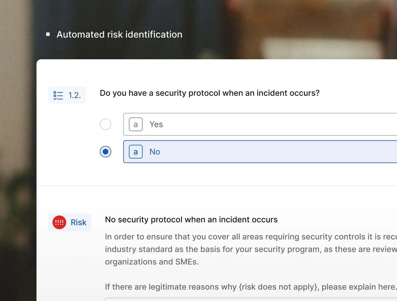 See risk as soon as responses arrive. Automated analysis flags key issues instantly — with severity ratings, affected controls, detected dates and supporting context — so your team can focus on what matters instead of wading through answers for insights.