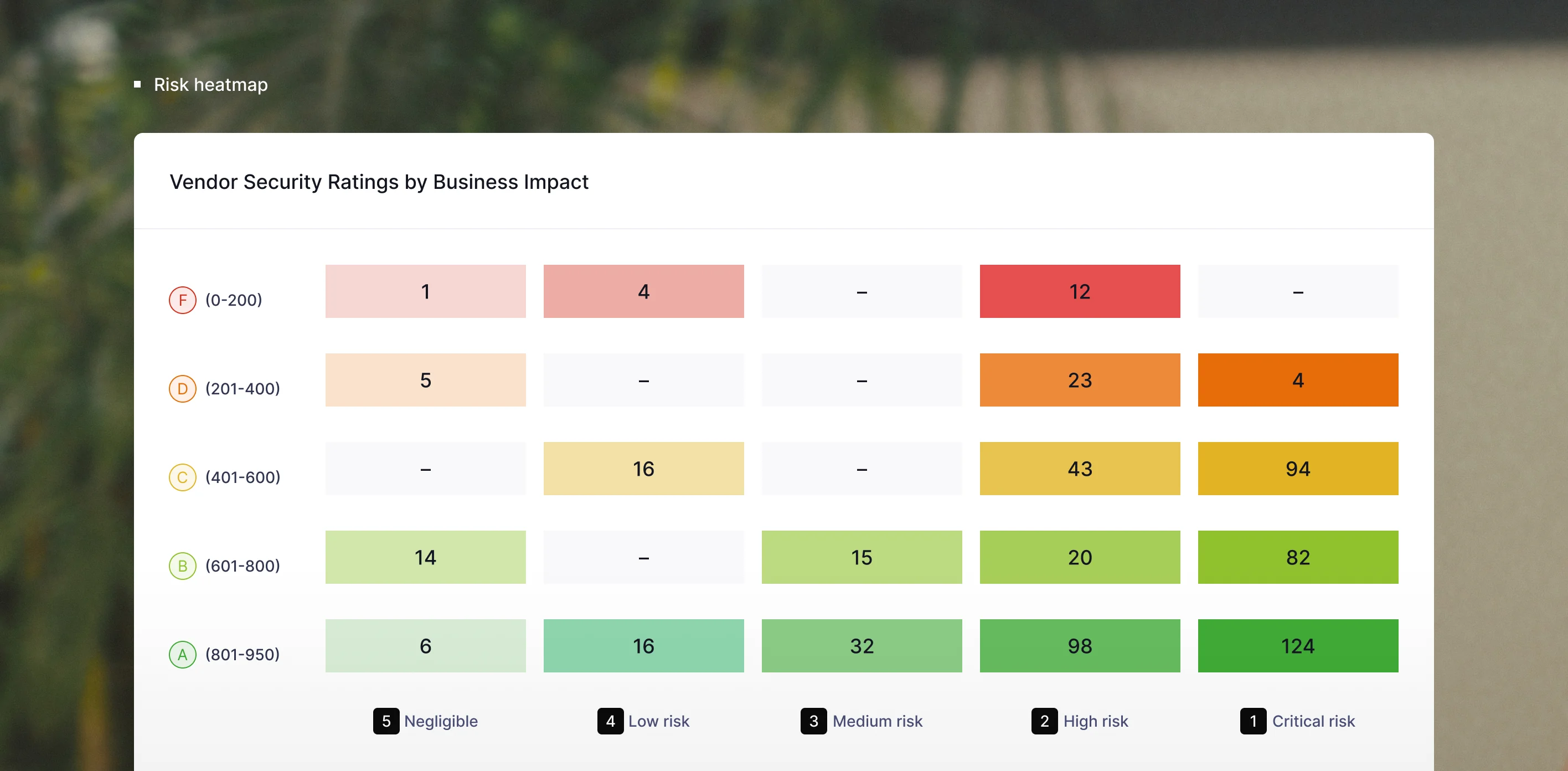 Replace hours of manual digging with always-on visibility. UpGuard’s live dashboards surface vendor posture, open risks, remediation progress and program-wide trends the moment they change – so you can answer any question in seconds.