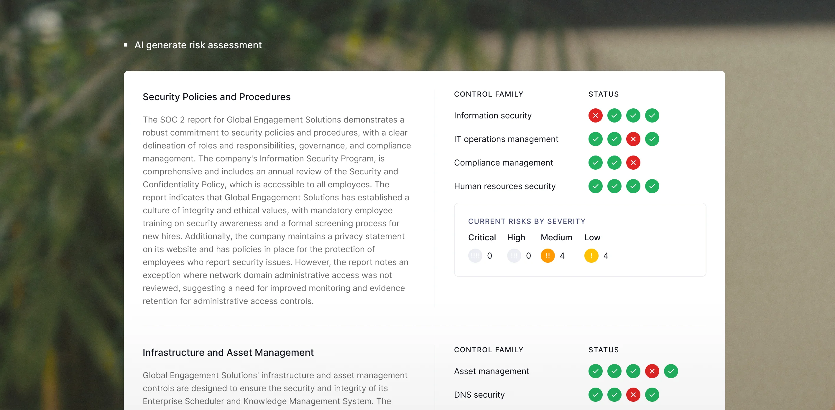 Backlogs don’t build resilience. UpGuard automates third-party risk assessments from start to finish – sourcing evidence, analysing documents, mapping controls and generating reports in minutes, not weeks — so your team can clear the queue, focus on insight, and drive smarter security decisions.